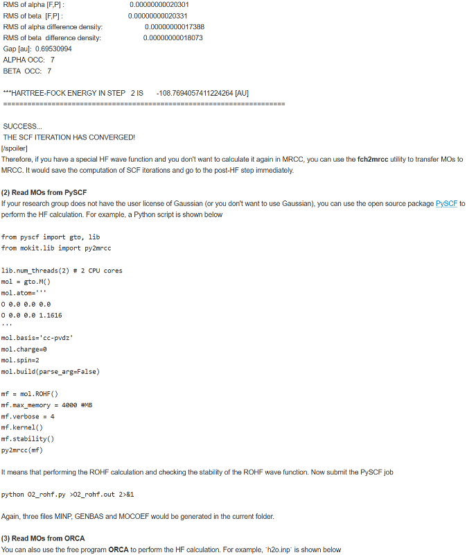 These tricks are not to replace the HF functionality in MRCC, but rather to solve SCF convergence problem easily and to avoid repeated SCF calculations among different quantum chemistry packages. Also, it makes users focus more on desired post-HF calculations. I sincerely hope this contribution proves to be useful and does not cause any inconvenience to the community.
